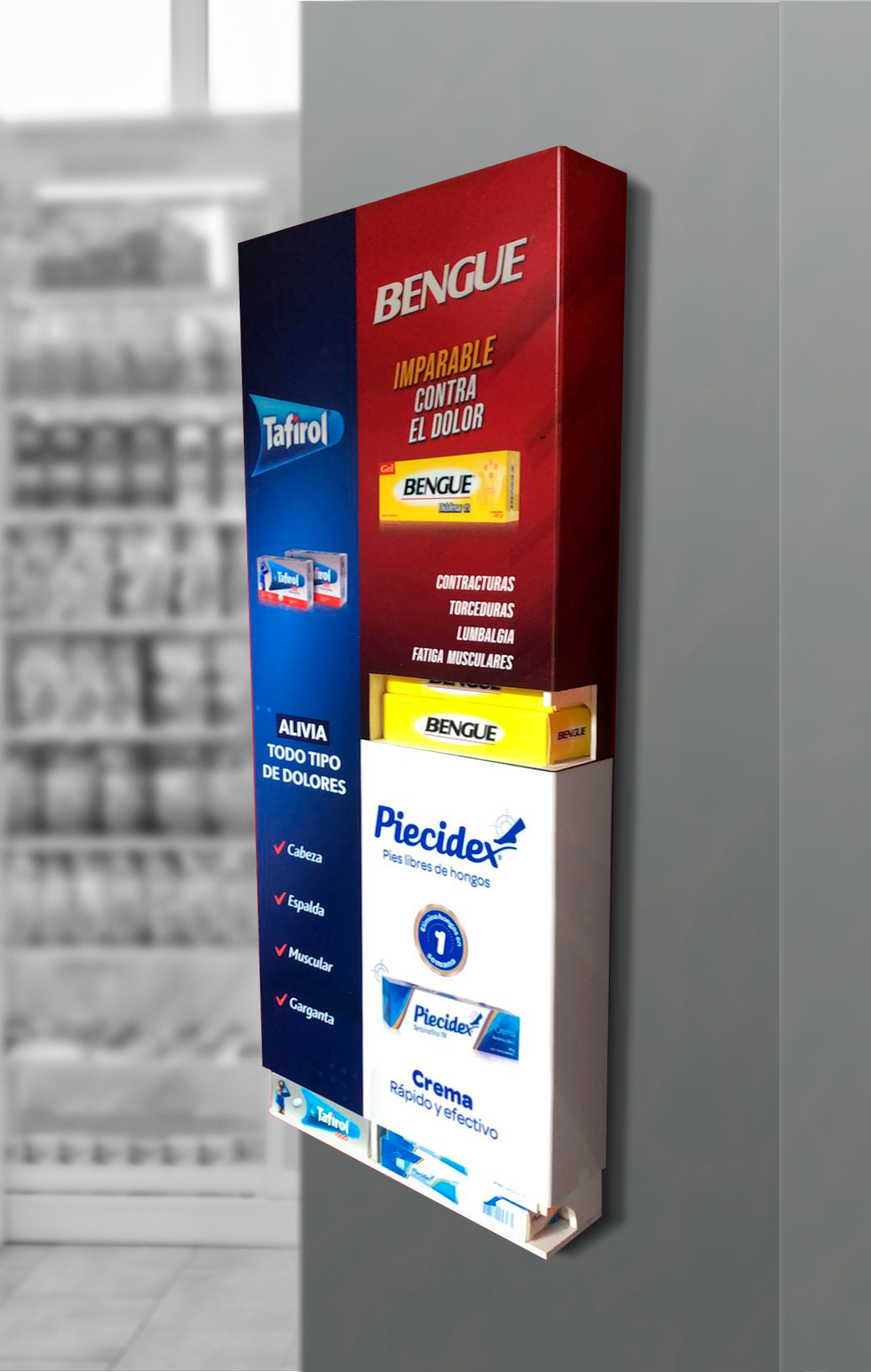 TIRAS de impulso y DISPENSADORES para exhibir productos colgados ideados especialmente para tu producto. Son de diversos materiales y con soportes adecuados a la forma y peso de tu empaque: botellas, latas, frascos, potes, tarros, pomos, cajas, estuches, blisters, bolsas, etc. etc. etc....