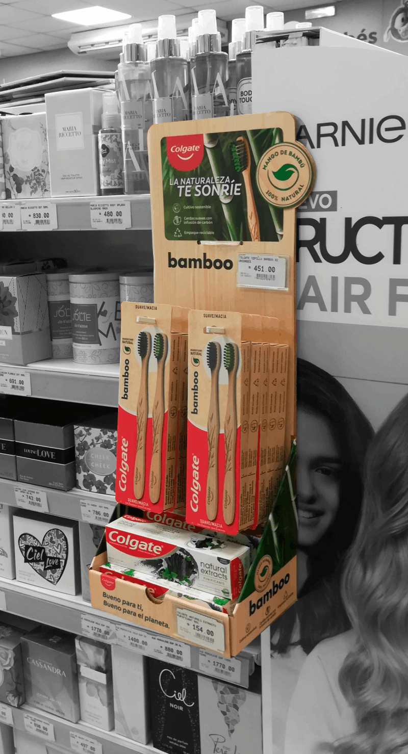 Tira impulso PALMOLIVE (Colgate-Palmolive) con contenedores transparentes.