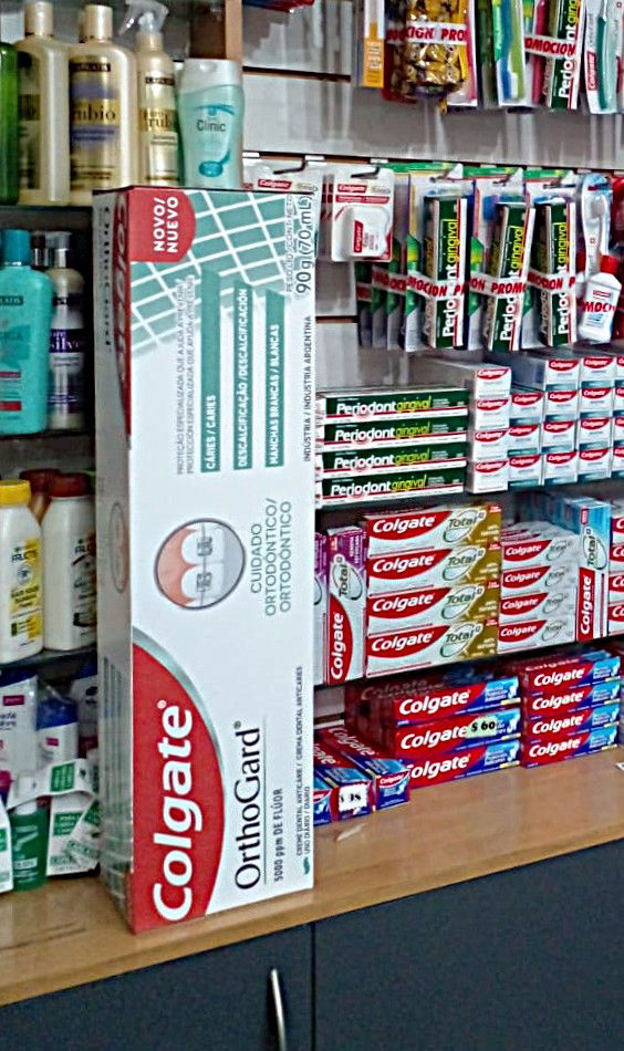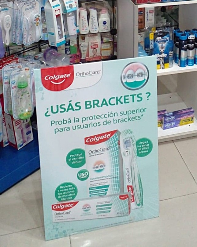 Marco COLGATE ORTHOGARD con soporte para productos.