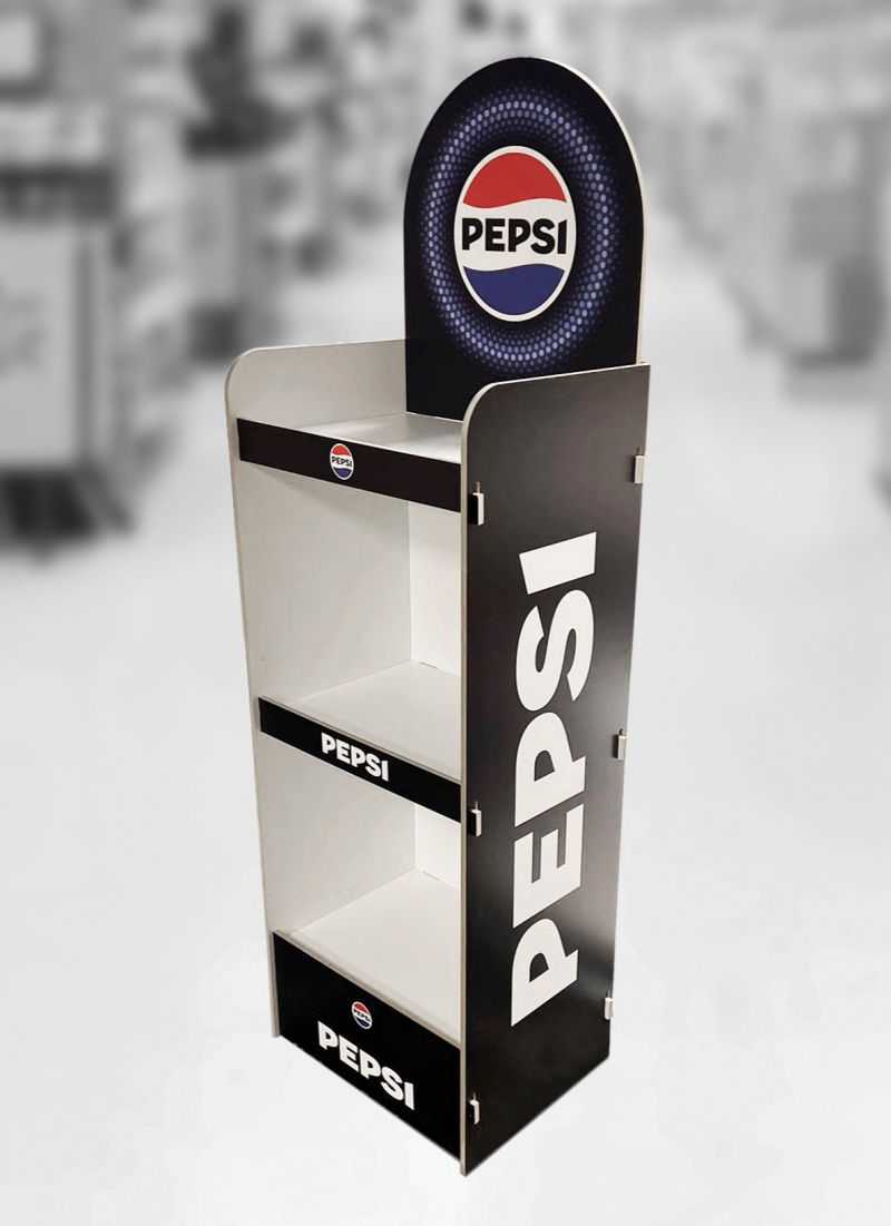 Exhibidores FNC - PEPSI en MDF melamínico armables.